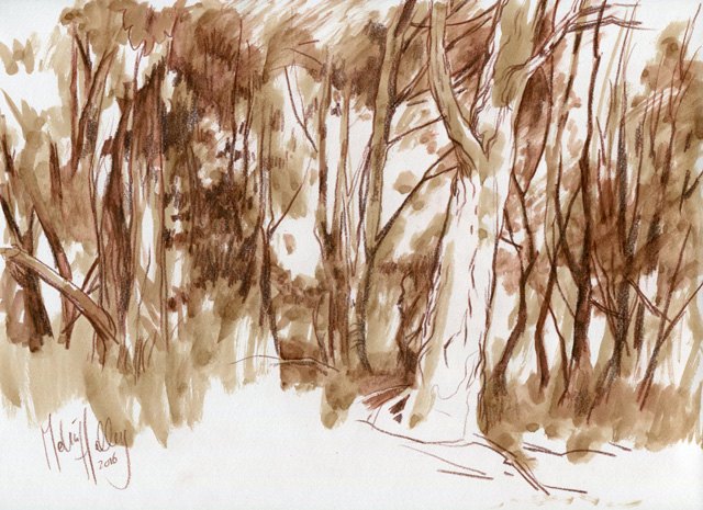 Amsterdamse Bos/ Amsterdam Forest, bistre & pencil, 24 x 30 cm