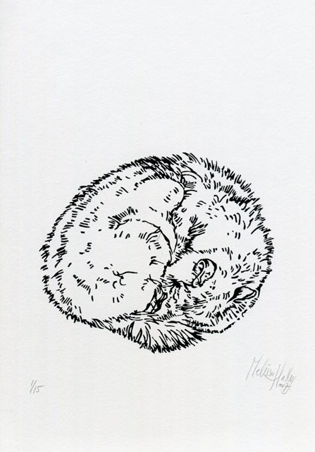Hibernating hazel- or common dormouse, Linocut, 30x24 cm, 2017